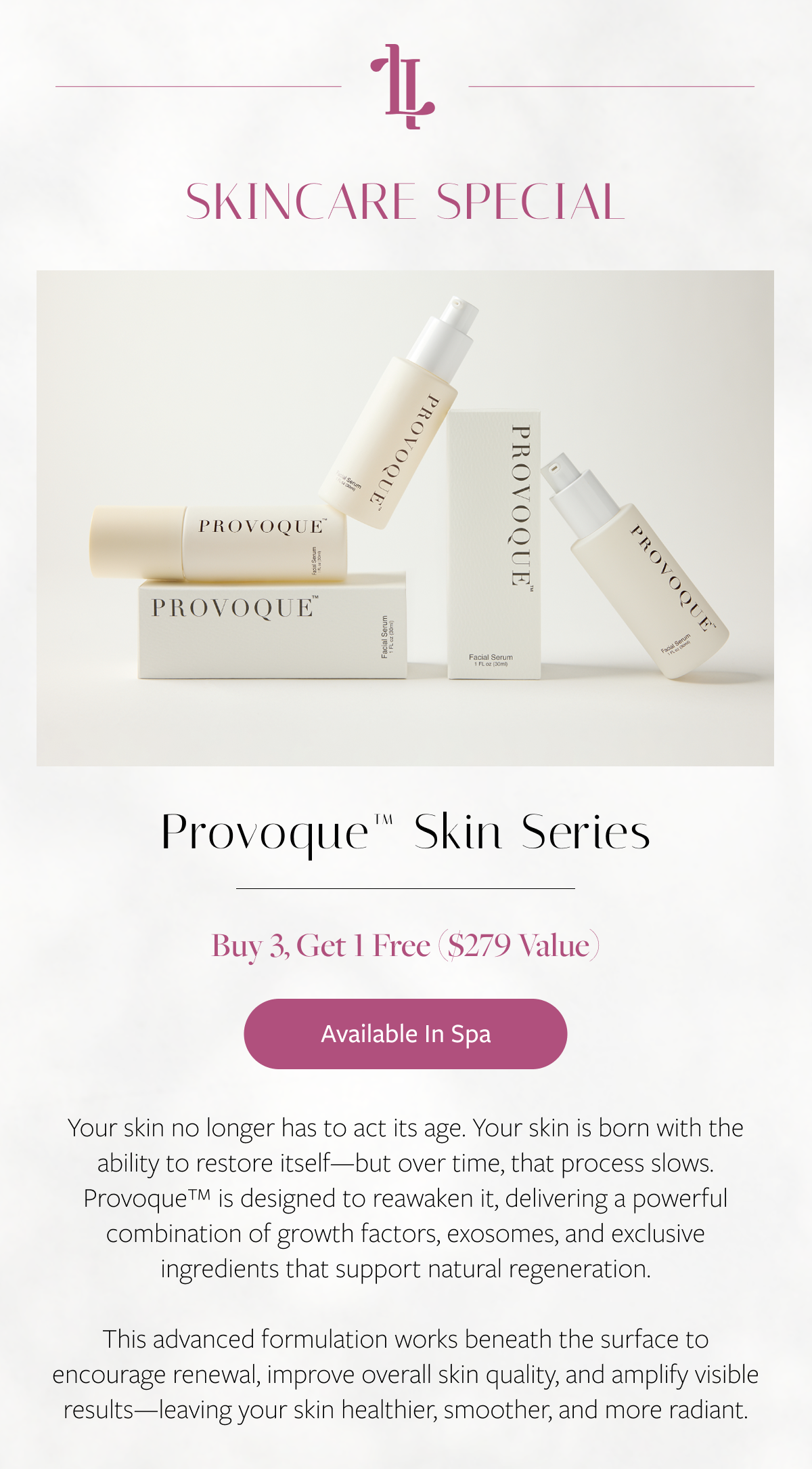 Welcome to our Med Spa Promotions – your gateway to exclusive beauty deals and savings. We're committed to making top-tier aesthetic treatments accessible, offering a variety of promotions on our advanced spa services. Experience luxury, rejuvenation, and beauty without compromise with our specially curated Med Spa Promotions.